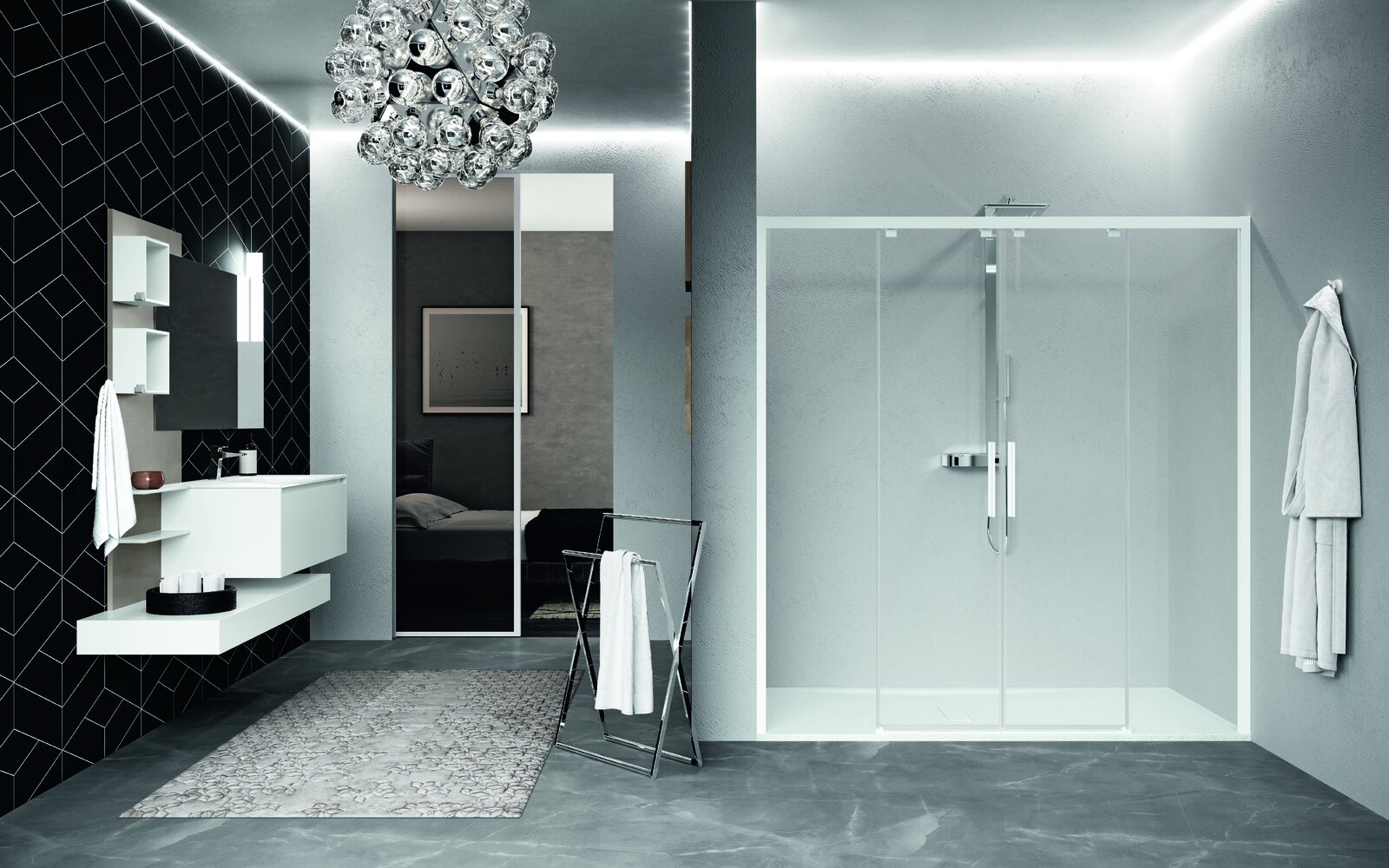 Die Schiebetür aus der neuen Novellini Serie Kuadra 2.0 schafft den gekonnten Mix aus anspruchsvoller Optik und bester Funktionalität. So zeigen sich die progressiven Technologien in den kugelgelagerten Rollen, die zum einen besonders geräuscharm und sanft, zum anderen aber auch schnell schließen dank des speziellen Soft-Closing-Systems. Verdeckte Wandprofile unterstreichen zudem den minimalistischen Look. Die Schiebetür ist aus hochwertigem Einscheiben-Sicherheitsglas mit der praktischen Antikalk-Beschichtung Crystal Clear und besteht aus je zwei Türen und Festfeldern. Kombinieren Sie die Kuadra 2.0 Schiebetür mit weiteren Festteilen oder nutzen Sie sie als Duschabtrennung für Ihre Nische. Profile stehen in den Farben Silber, Schwarzmatt, Chrom und Weiß zur Verfügung.