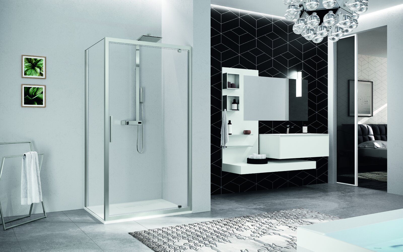 Die Pendeltür Kuadra 2.0 von Novellini bereichert moderne Bäder mit anspruchsvollem Look. Sie präsentiert sich in bewährtem, minimalistischem Design. Dieses entsteht nicht zuletzt durch die clever verdeckten Wandprofile. Sowohl zur Boden- als auch zur Wannenmontage geeignet, kann das Türelement mit einer Seitenwand kombiniert werden, ist aber auch für Nischenlösungen die ideale Wahl. Für ein perfektes Gleiten sorgt das spezielle Soft-Closing-System. Kugelgelagert, gleitet die Tür sanft und besonders leise dahin. Wählen Sie dazu eine Profilfarbe, die zu Ihnen und Ihrem Badezimmer passt: Silber, Chrom, Weiß oder Schwarzmatt.