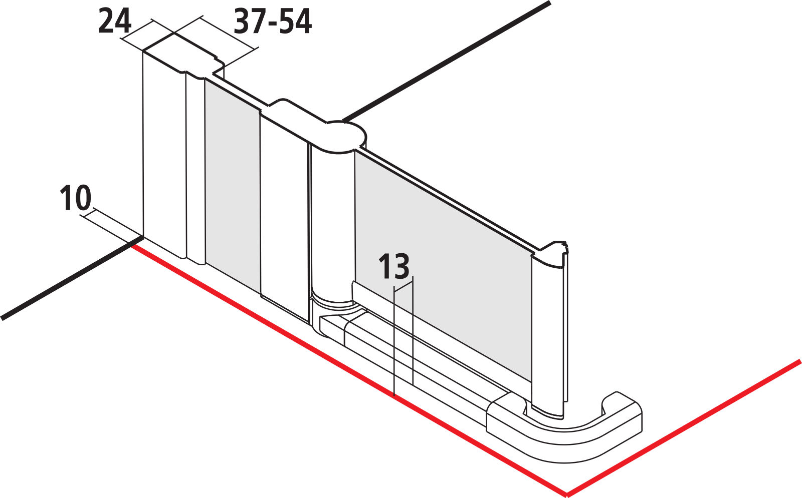 Einbaumaß Duschwanne / Verstellbereich mit Seitenwand