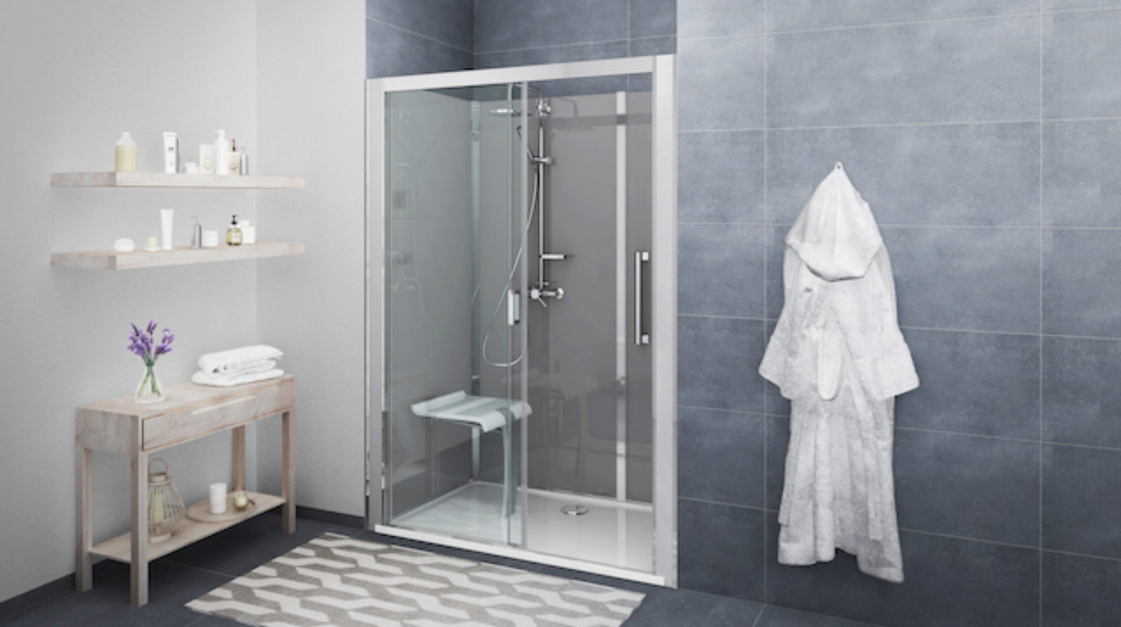 Wer sein Badezimmer fürs Alter umgestalten möchte, bekommt mit den nachträglich verbaubaren Duschelementen der Serie Vinata die perfekte Lösung angeboten.