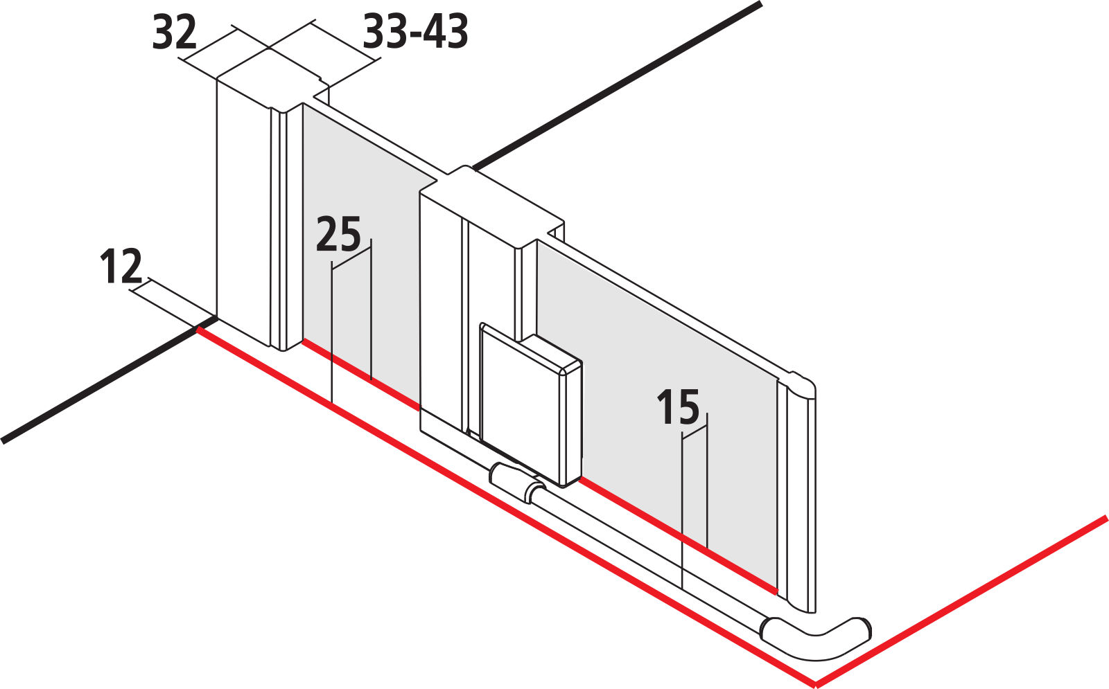 Einbaumaß Duschwanne / Verstellbereich mit Seitenwand