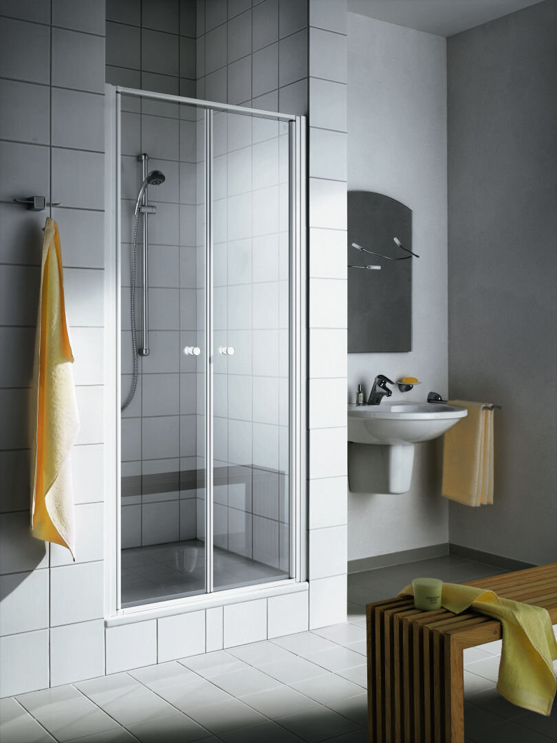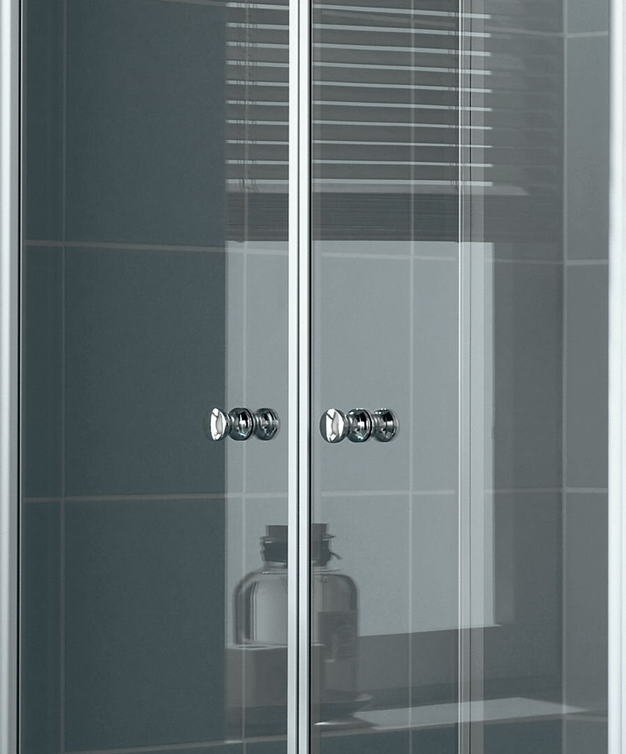 Die teilgerahmte Pendeltür Ibiza 2000 von Kermi besteht aus zwei, sich in beide Richtungen öffnenden Flügelelementen aus Sicherheitsglas. Mit Aluminiumprofilen und Griffen aus hochwertigem Kunststoff. Die Pendeltür ist perfekt für den Einbau in Nischen oder zur Kombination mit sämtlichen Seitenwänden der Ibiza 2000 Serie geeignet.