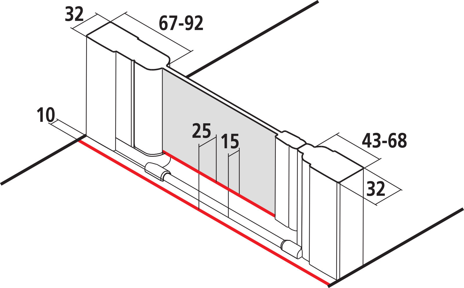 Einbaumaß Duschwanne / Verstellbereich mit Seitenwand