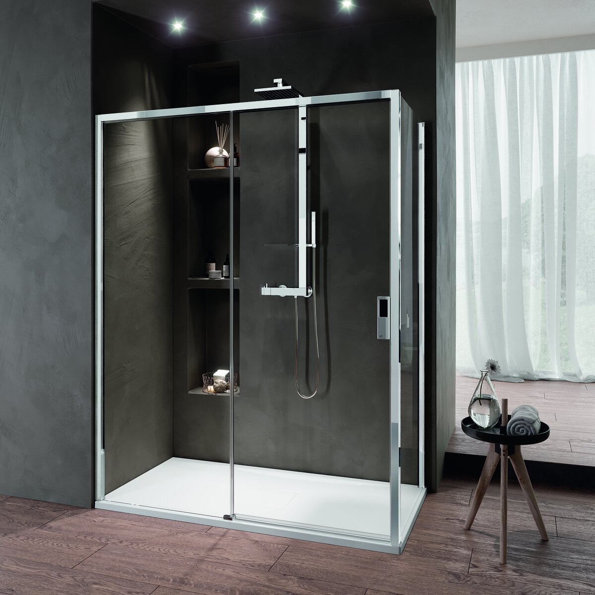 Die Seitenwand F aus der Novellini Reihe Opera ist die ästhetische Grundlage für moderne Duschlösungen. Vielseitig zu kombinieren, stellt das Festfeld die Basis für Ihre Traumdusche dar: zum Beispiel mit einer zusätzlichen Schiebetür gekoppelt. Die Duschwand ist aus hochwertigem, klarem Einscheiben-Sicherheitsglas mit der wasserabweisenden Crystal Clear Beschichtung gefertigt und bietet damit komfortable Pflegeeigenschaften. Wählen Sie dazu Ihr Wunschprofil: in Schwarzmatt, Weiß-Créme, Silber oder Chrom.
