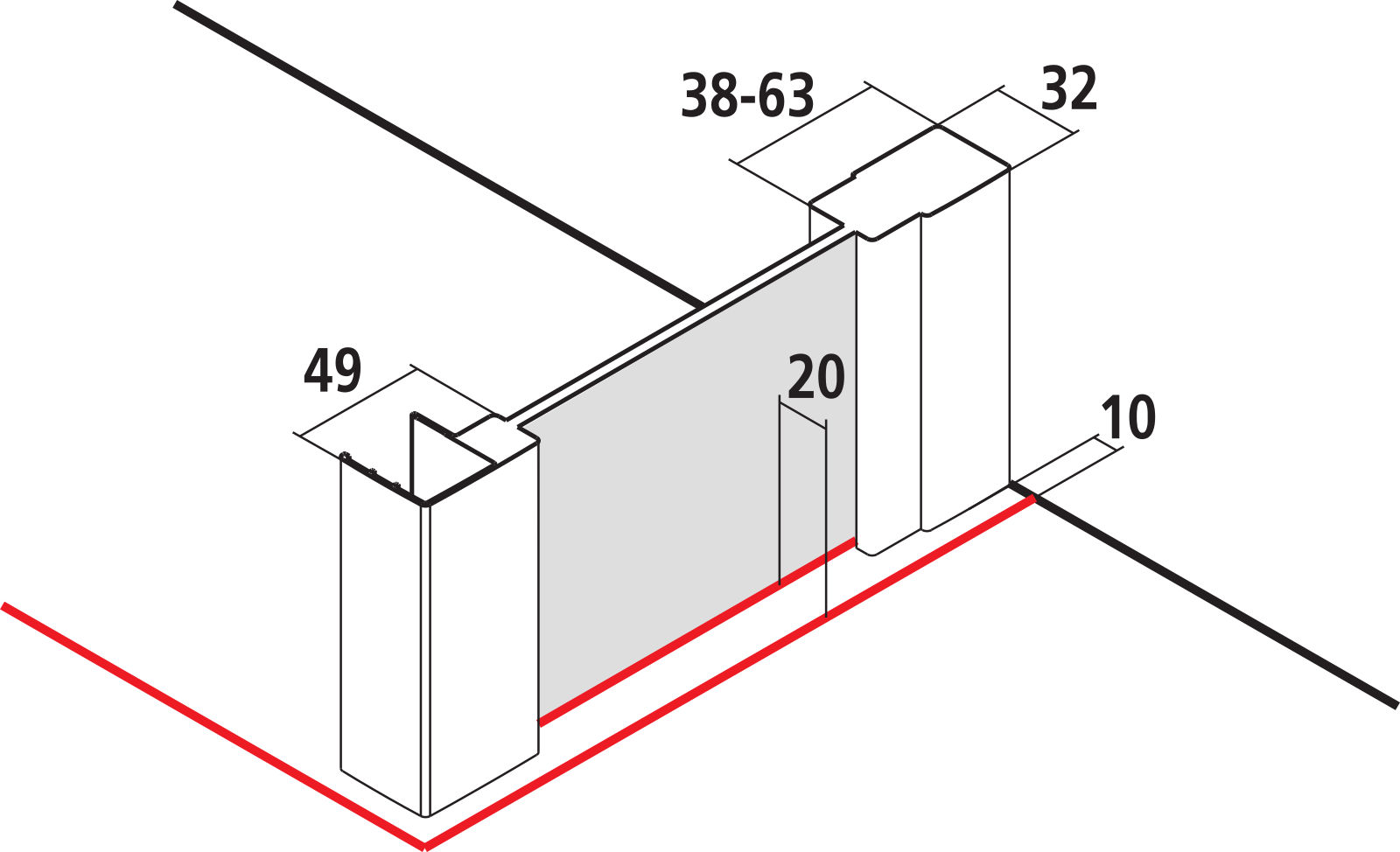 Einbaumaß Duschwanne / Verstellbereich mit Seitenwand