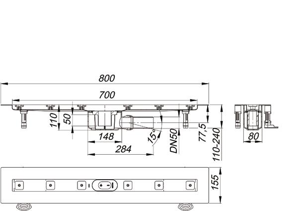CeraLine Dallmer F 700mm, BH 110mm f.Duschrinne,m.1 Ablaufgehaeuse, Flaeche
