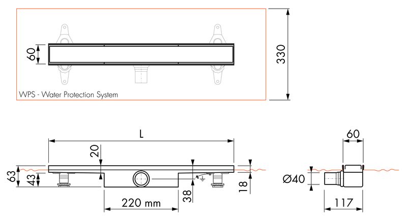 Sperrwasserhöhe: 30mm