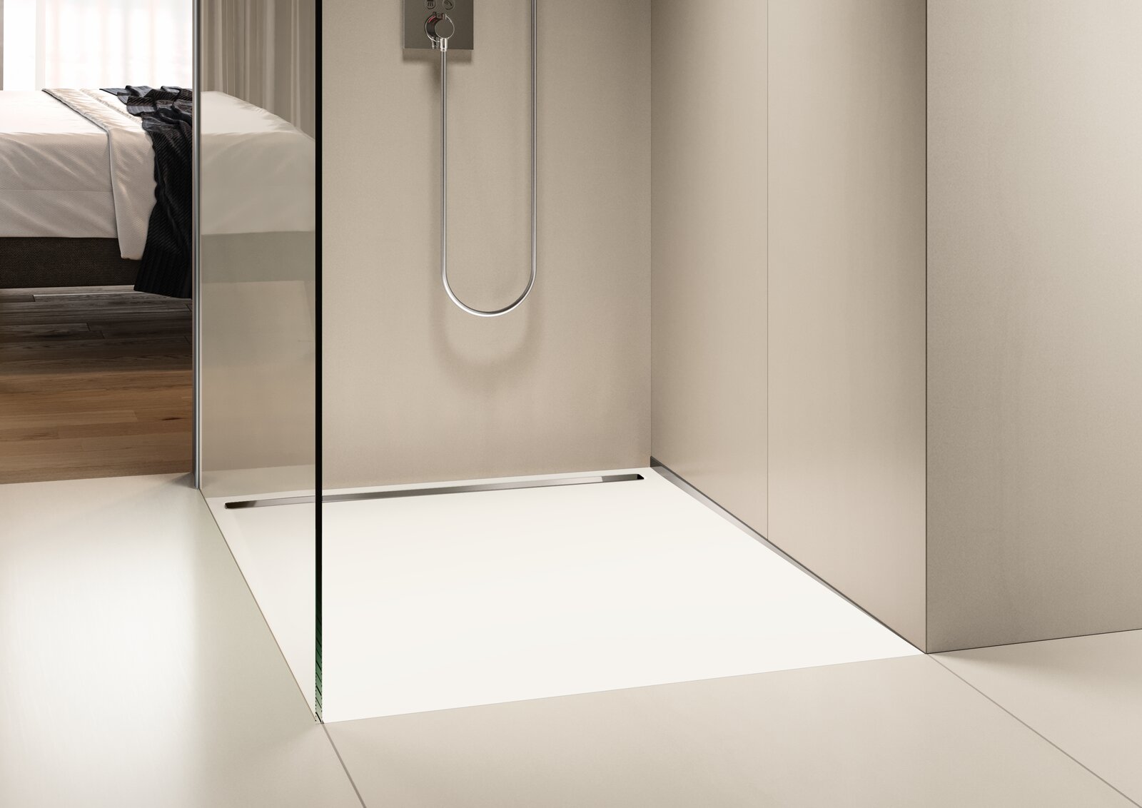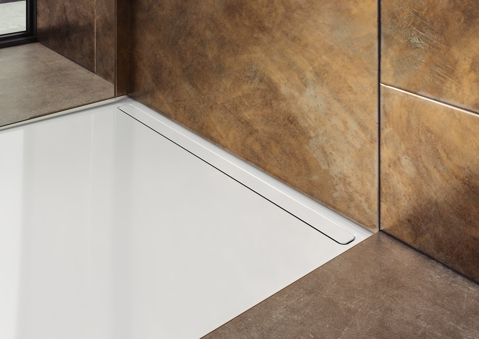 Wie Bodenebenheit in der Dusche optimal funktioniert, zeigt Nexsys von Kaldewei eindrucksvoll auf. Denn hier hat der deutsche Qualitätshersteller ein wahrhaft revolutionäres Konzept umgesetzt: ein vormontiertes 4-in-1-System. So handelt es sich bei Nexsys nicht nur um eine Duschfläche, sondern gleichzeitig auch um eine Ablaufrinne, einen Gefälleträger und eine Abdichtung. Dank dieses einzigartigen Gesamtpakets erhalten Sie sehr schnell und einfach eine bodenebene Duschfläche mit einem Rinnendesign. Denn hier ist bereits alles fertig und verbunden. Darüber hinaus verfügt Nexsys über eine absolut flache Oberfläche, die keine Innenkonturen aufweist. Dabei ermöglicht die System-Lösung eine großzügige Standfläche, wobei sie eine harmonische Bad-Gestaltung verspricht. Übrigens besteht die Duschfläche aus Stahl-Email – ein Material mit Vorteilen wie Festigkeit, hoher Belastbarkeit und Robustheit. In Kombination mit der fugenlosen Fläche verspricht dies auch eine leichte Reinigung sowie Langlebigkeit. Ferner fällt die Ablaufrinne dezent aus, sie hat eine Designblende aus gebürstetem Edelstahl. So ist mit Nexsys im wahrsten Sinn alles sehr sauber. Die Duschfläche von Kaldewei gibt es in verschiedenen Abmessungen, sowohl im Rechteck als auch im Quadrat.