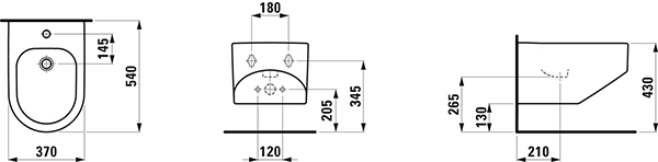 Wandbidet Sonar 54x37cm 1 Hl. o. seitl. Loch f. Wasserans weiss Laufen