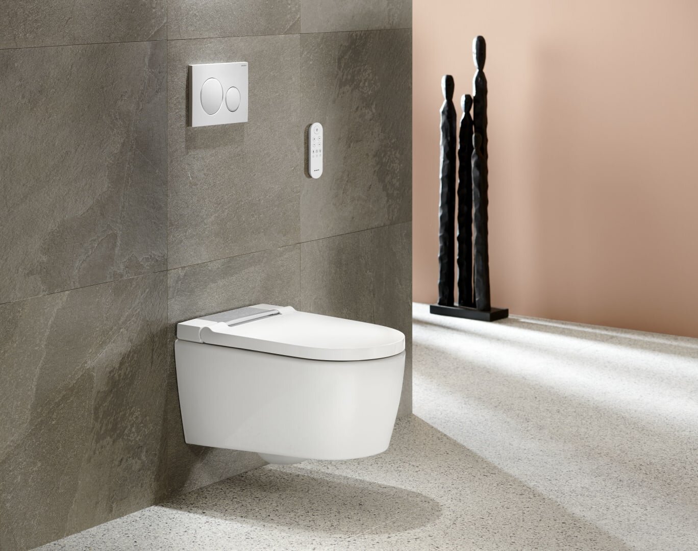 Das Dusch-WC AquaClean Sela von GEBERIT präsentiert sich mit puristischem Design und komfortabler Ausstattung. Mit seiner schlanken, eleganten Formensprache fügt es sich perfekt in ein jedes Badambiente ein.