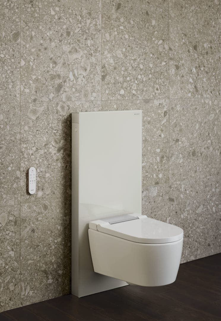 Sowohl beim wandhängenden wie auch beim bodenstehenden Geberit AquaClean Sela ist die Soft-Closing-Funktion schon integriert. Langsam und geräuschlos schließen WC-Sitz und Deckel und lassen gleichzeitig das Bedienfeld unsichtbar werden. Ein weiteres Highlight ist die Soft-Stopp-Opening-Funktion. Dabei bleiben WC-Sitz und Deckel beim Öffnen ohne Wandanschlag im 90°-Winkel stehen – für eine einfache Reinigung und bequeme Pflege.