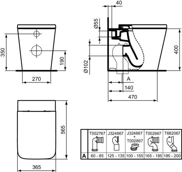 Standtiefspül-WC Blend Cube AquaBlade 355x560x400mm Seidenweiss Ideal Standard