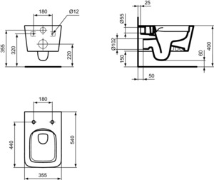 Lochabstand Befestigung Wand-WC (cm)