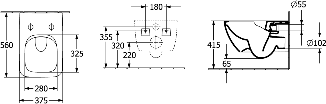 wandhängend, Spülrandlos (mit
