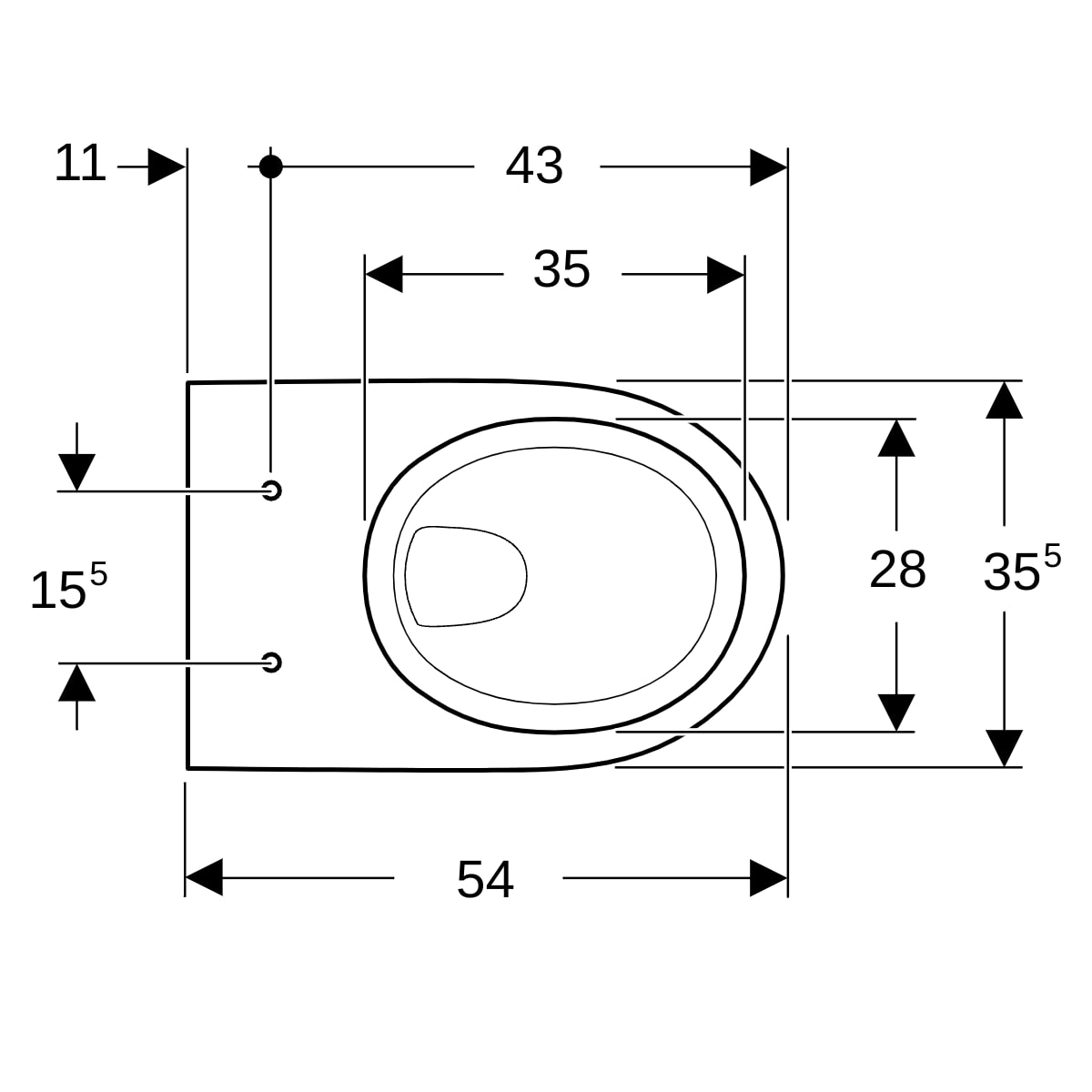 Lochabstand Befestigung Wand-WC (cm)