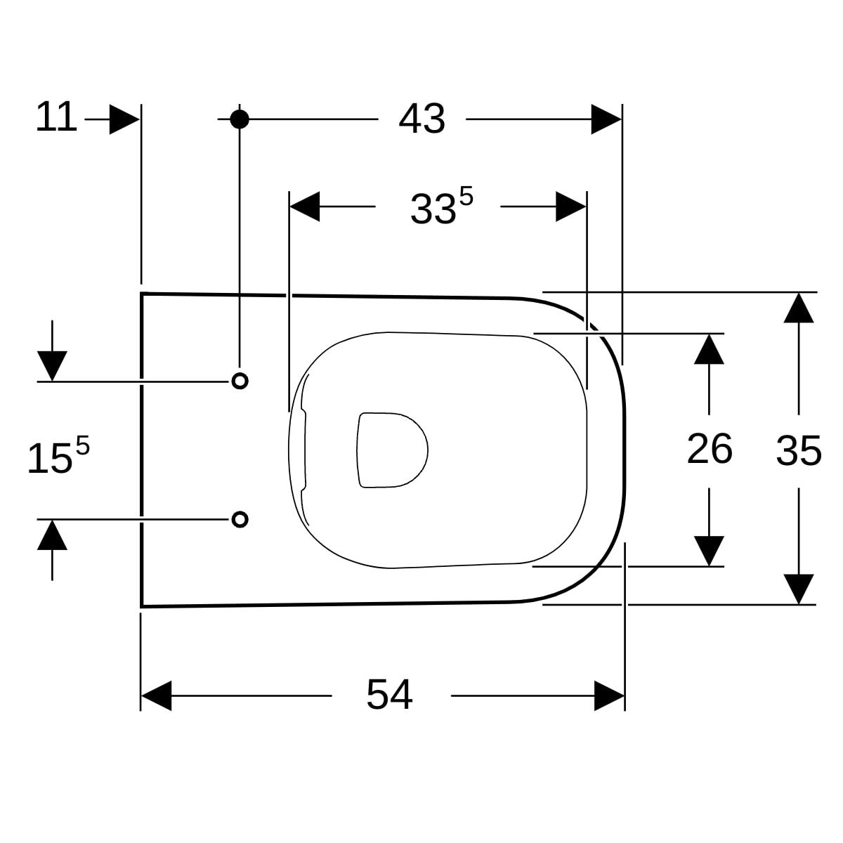 Lochabstand Befestigung Wand-WC (cm)