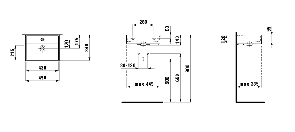 340x450x140 1 Hahnloch mit Überlauf