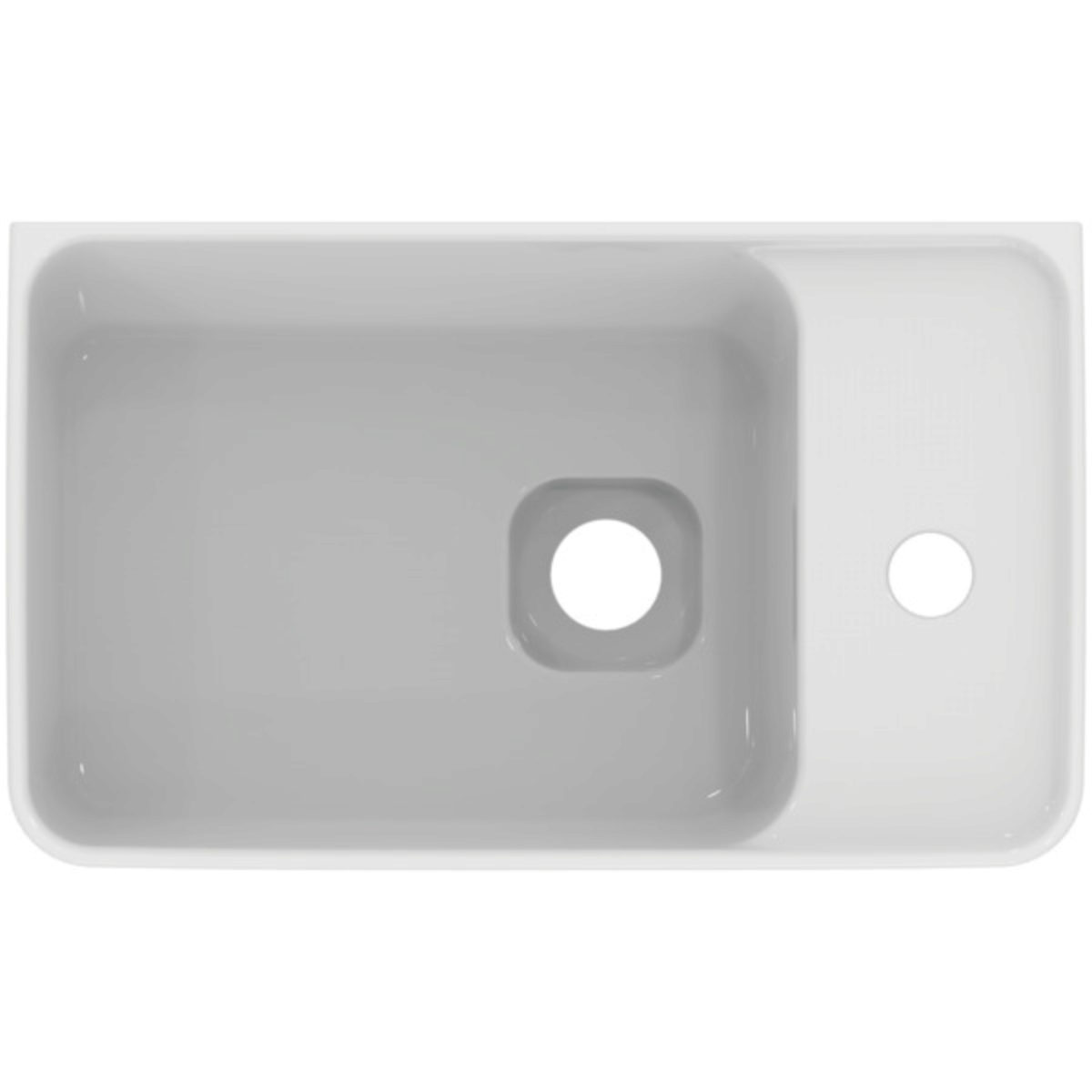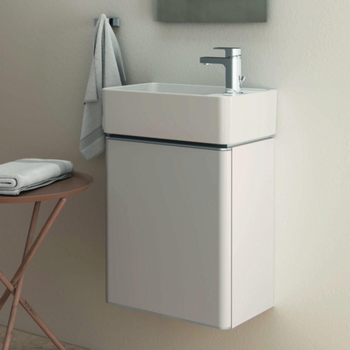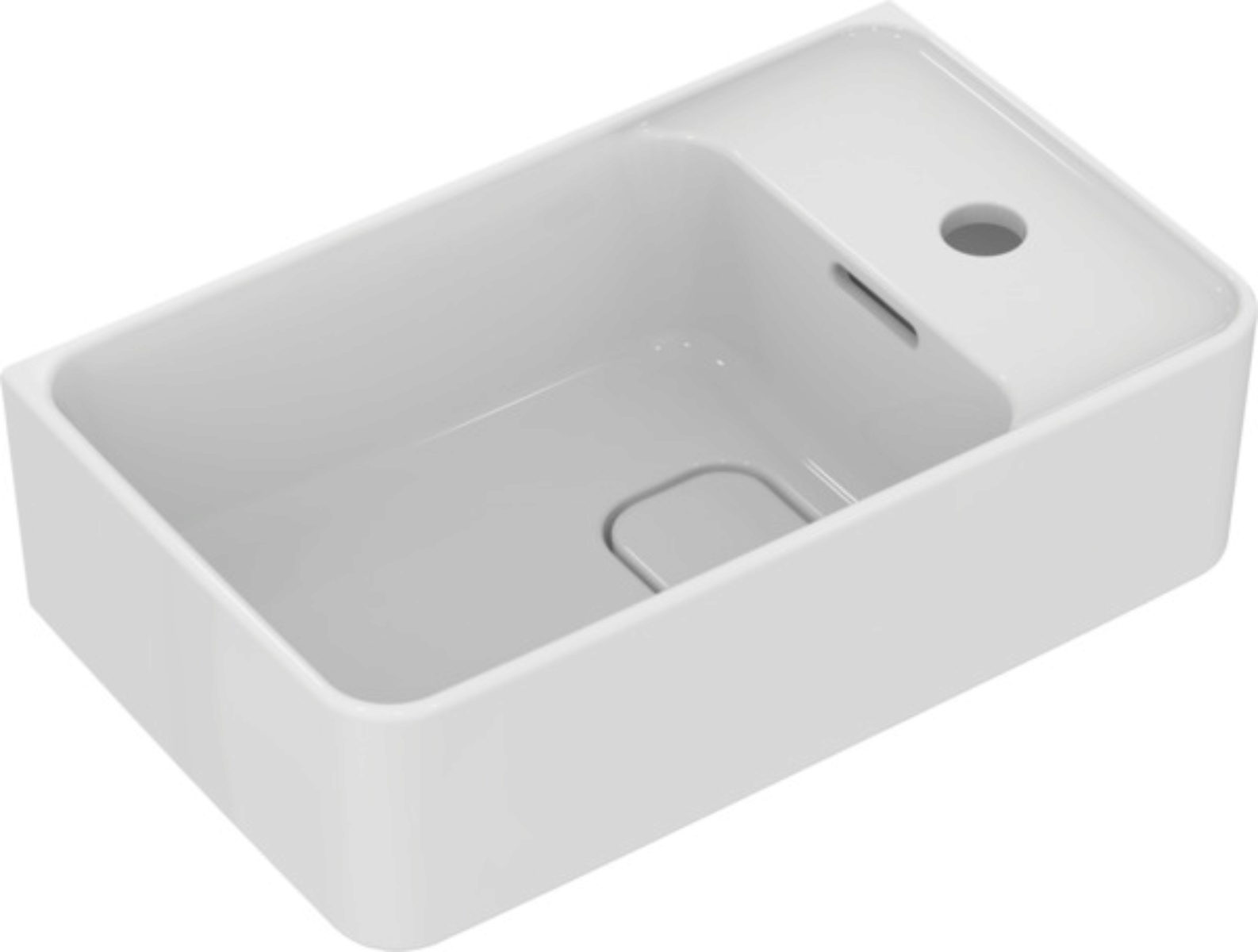 Mit seiner seitlich positionierten Armatur und der kompakten Maße ist das Handwaschbecken Strada II von Ideal Standard wie gemacht für kleine Bäder. Das kubische Design dient hier als gelungenes Grundkonzept, eindrucksvoll zeigt sich aber der Kontrast aus kantigem Design und abgerundeten Ecken. Das kleine Strada II Waschbecken ist zudem aus wertigem Feinfeuerton hergestellt und strahlt eine elegante Präsenz aus – die optimale Wahl für zeitgemäße Badkonzepte mit dem gewissen Etwas.