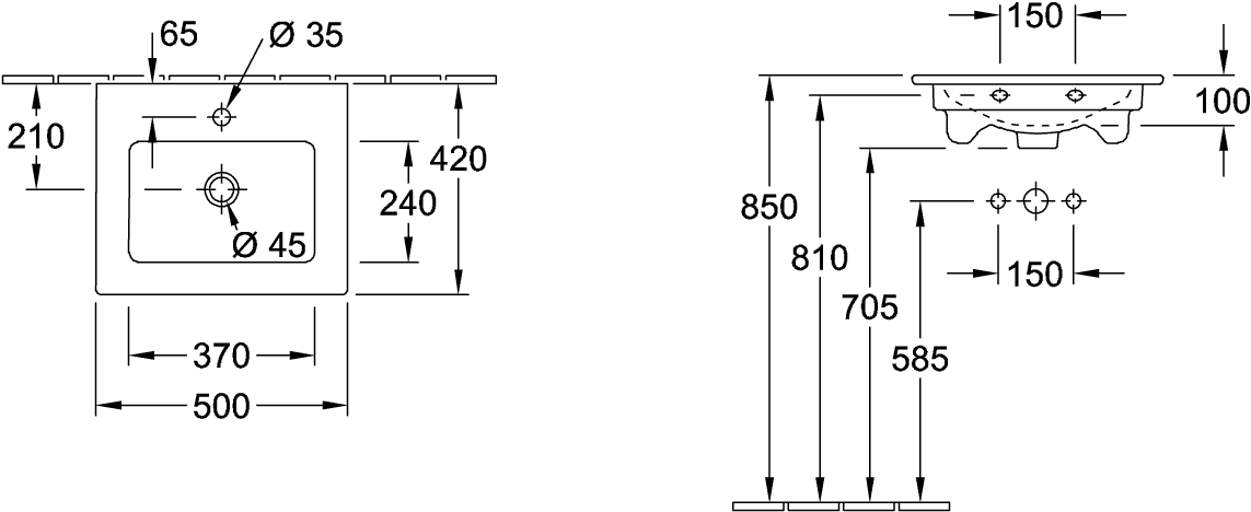 Eigenschaften, Höhe in mm: 150, Breite
