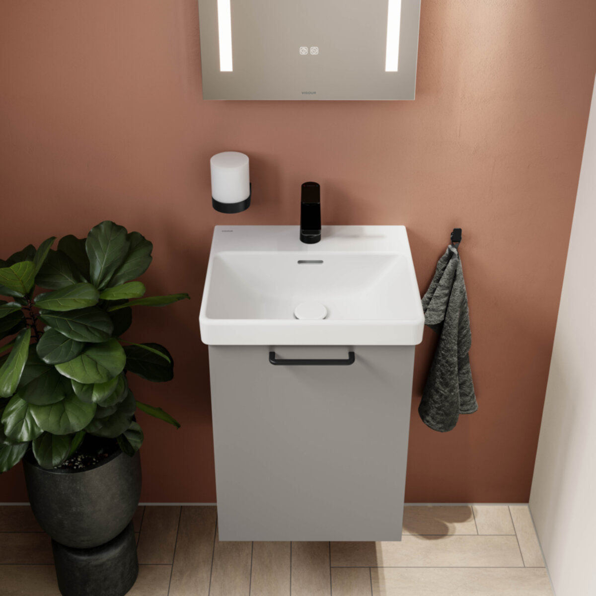 Geradlinig und funktional: Das derby V3 Möbel-Handwaschbecken von VIGOUR überzeugt mit eckigem Design, tiefem Innenbecken und einem modernen länglichen Überlauf. Die PflegetectPLUS-Beschichtung schützt zuverlässig vor Ablagerungen und sorgt für langanhaltende Sauberkeit.