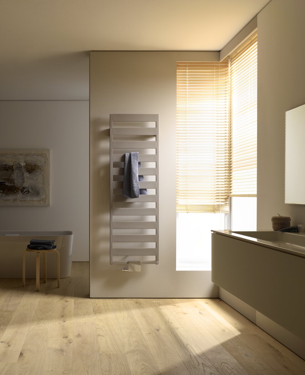 Der Casteo Bad- und Designheizkörper von Kermi überzeugt mit seinen waagerechten Flachrohren und einem eleganten U-förmigen Rahmen aus Quadratprofilen. Die großen Abstände zwischen den Rohren bieten ausreichend Platz zur Handtuchaufhängung. Dieser Heizkörper kann flexibel in horizontaler, vertikaler oder im Wandabstand montiert werden, um perfekt in Ihr Badezimmer zu passen.
